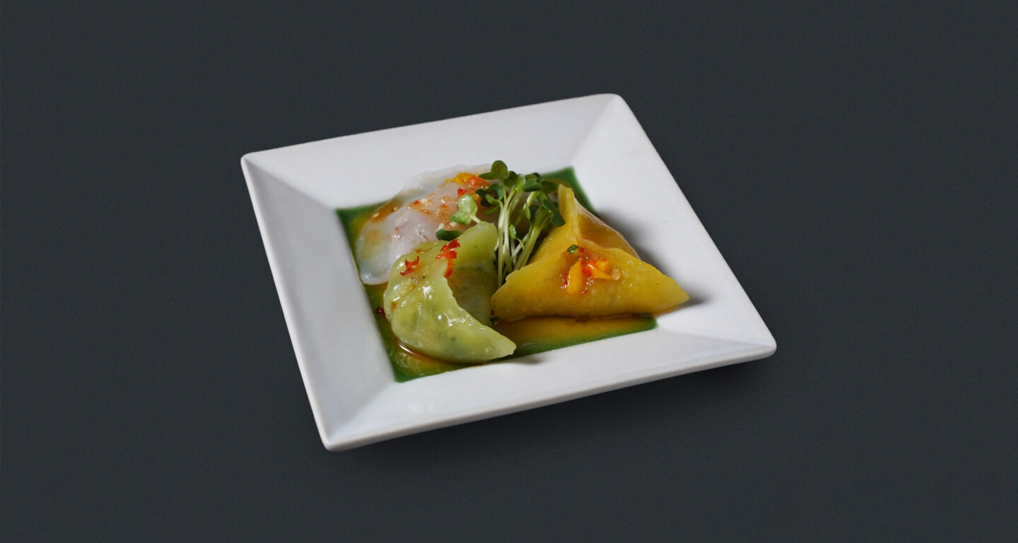 3色水晶餃子 価格 580円 (税込) ほうれん草やにんじんを練り込んだ特製の生地で仕上げた、つるんとした喉ごしが心地よい水晶餃子。 見た目にも美しい3色の餃子で、それぞれ異なる味わいをお楽しみいただけます。 • 透明の水晶餃子 … たけのこ・豚ミンチ・エビ入り • 緑の水晶餃子 … ほうれん草・豆苗・アミエビ・豚ミンチ入り • 黄色の水晶餃子 … にんじん・豚ミンチ入り 素材の風味と食感のバランスにこだわった、当店自慢の逸品です。 アレルギー情報 エビ アミエビ 豚肉 このメニューをシェア 豆乳スープ 一覧へ