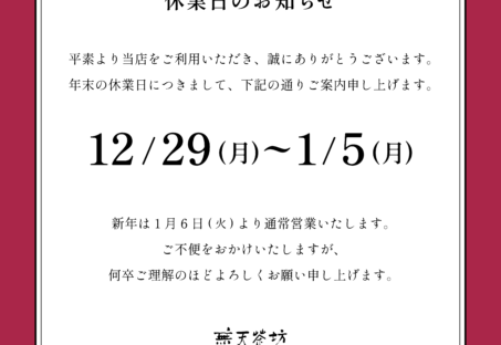 お知らせ カテゴリー アーカイブ お知らせ イベント メディア掲載情報 2025年12月 2025年10月 2025年9月 2025年8月 2025年6月 2025年4月 お知らせ 2025.12.11 年末年始の営業について イベント 2025.12.11 ミニ台湾フェア開催のお知らせ お知らせ 2025.12.01 2025年12月 休業日・胡椒餅販売日のお知らせ お知らせ 2025.10.31 2025年11月 休業日・胡椒餅販売日のお知らせ お知らせ 2025.09.30 2025年10月 休業日・胡椒餅販売日のお知らせ お知らせ 2025.08.25 2025年9月 休業日・胡椒餅販売日のお知らせ お知らせ 2025.06.08 臨時休業のお知らせ お知らせ 2025.04.20 2025年5月 休業日のお知らせ お知らせ 2024.09.02 2024年9月 休業日のお知らせ 1 2 3 … 9
